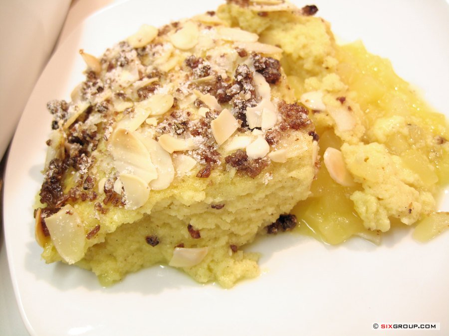 Milch, Butter, 1Päckchen Vanillezucker und Salz aufkochen. Grieß einrühren und unter Rühren bei schwacher Hitze ca. 5Min. köcheln lassen. Eier trennen, Eigelbe mit 50g Zucker verrühren und unter die Grießmasse ziehen. Eiweiß steif schlagen und 40g Zucker nach und nach einrieseln lassen. Eischnee unter die Grießmasse heben.